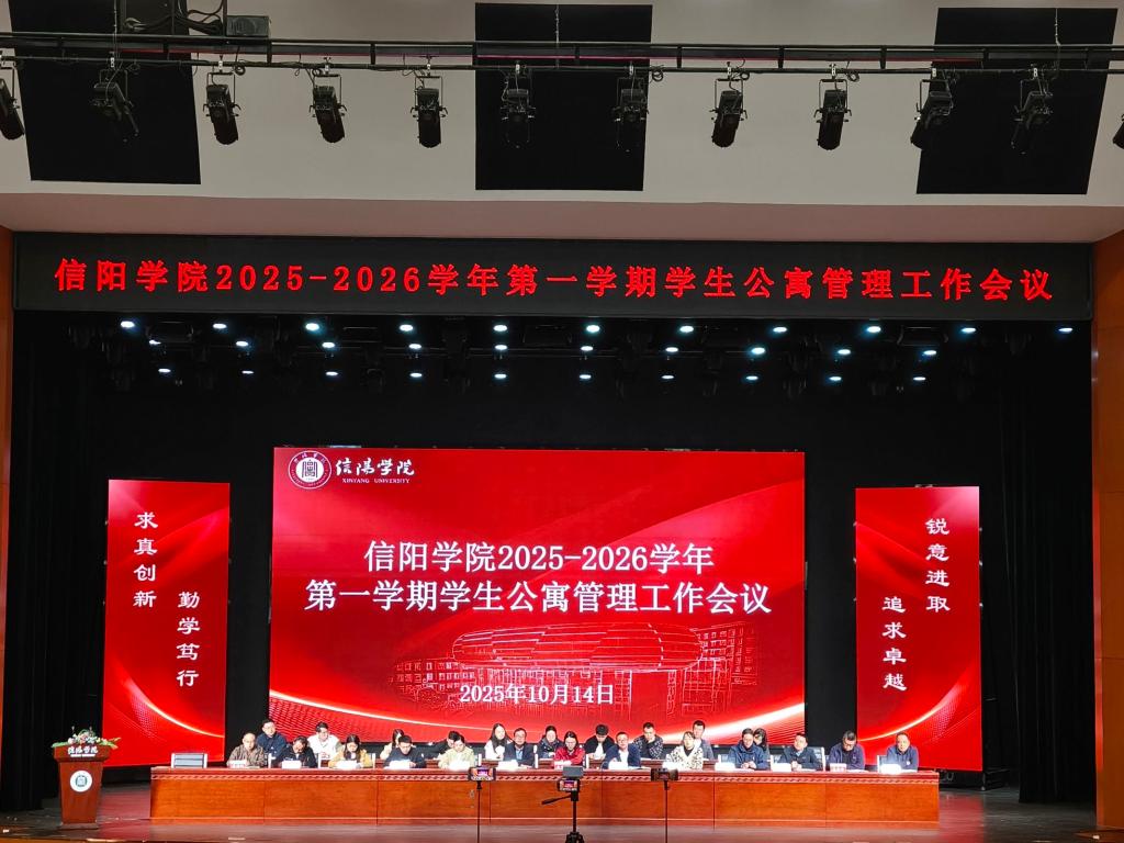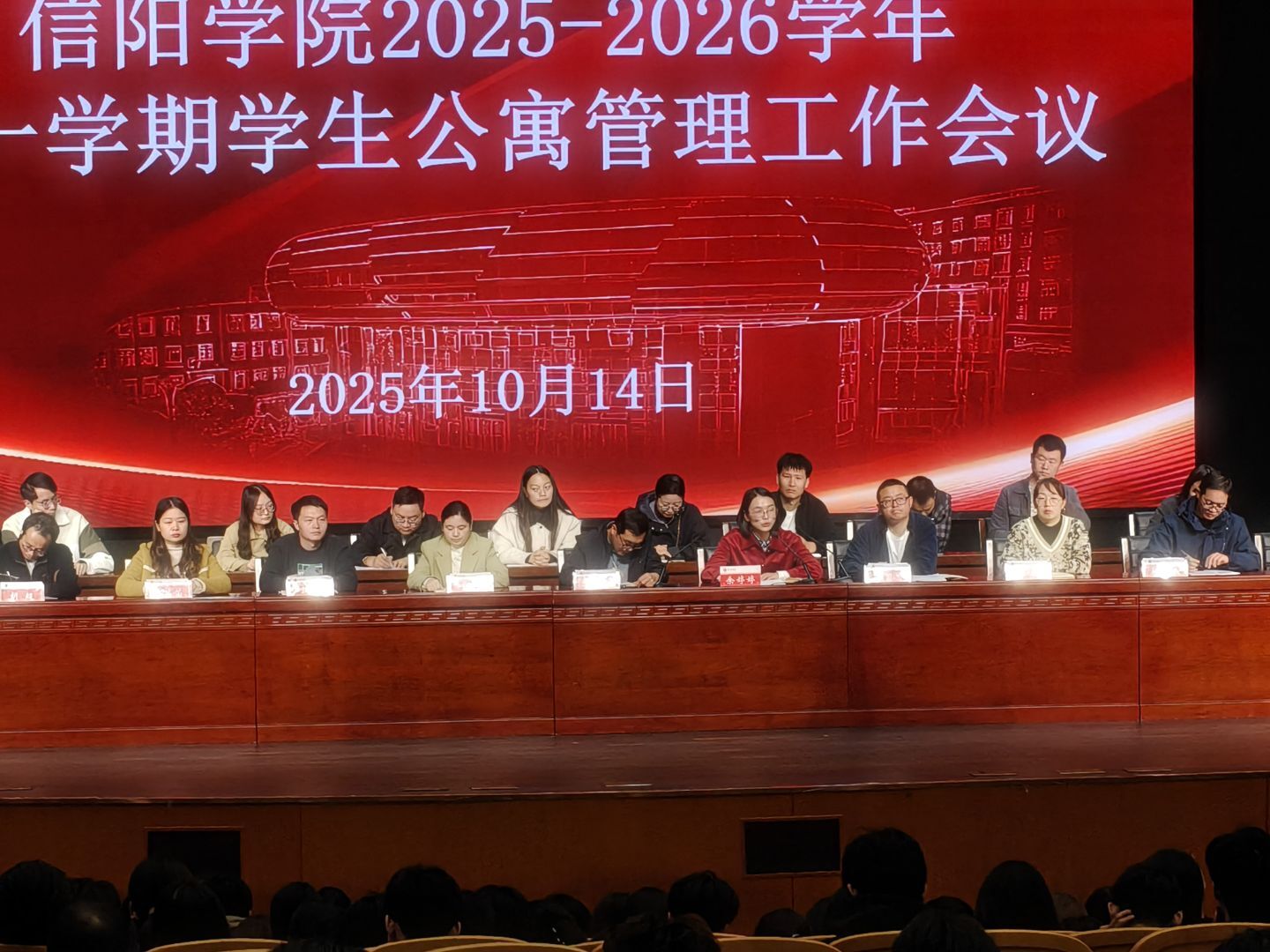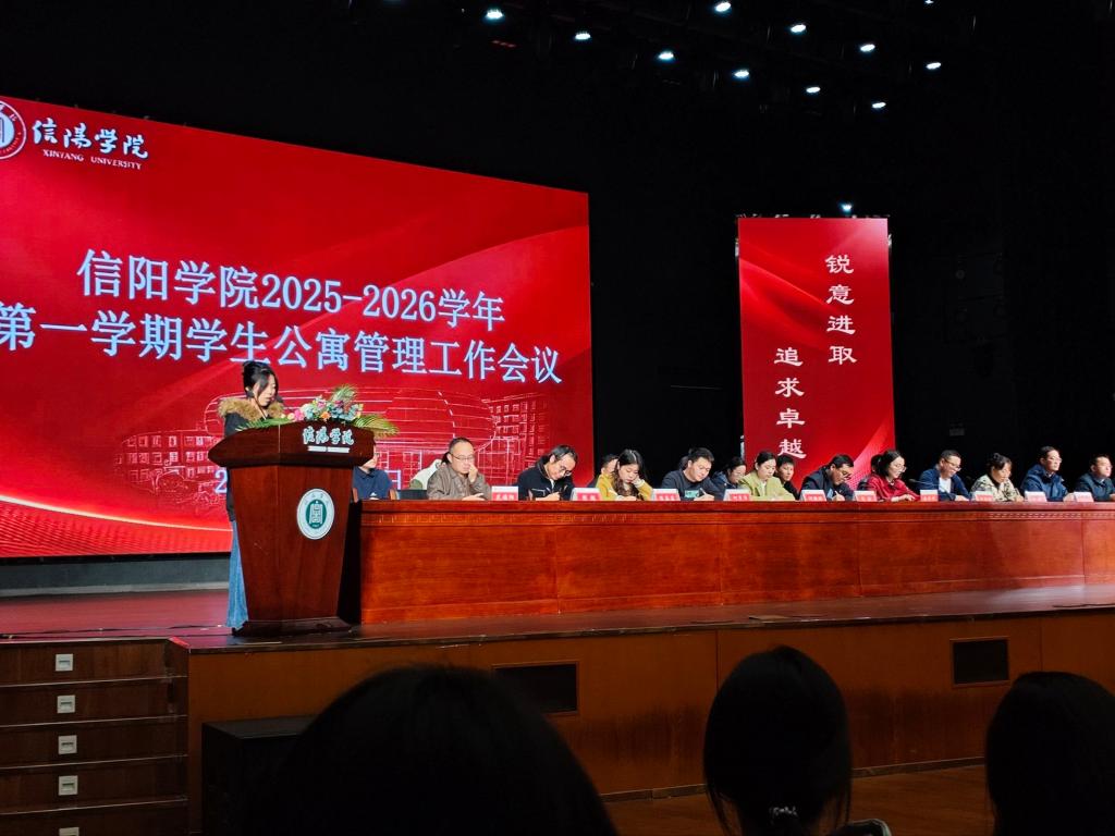 2025年10月14日下午,我校在浉河音乐厅及南湖教一楼113、教二楼117、教三楼005隆重召开2025-2026学年第一学期学生公寓管理工作会议。学生工作处、各学院学工负责人、学院管理公寓的辅导员及各学院寝室长代表齐聚一堂,会议由寝教楼管理中心负责人万圆圆主持。