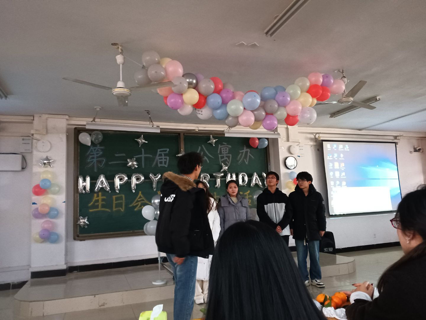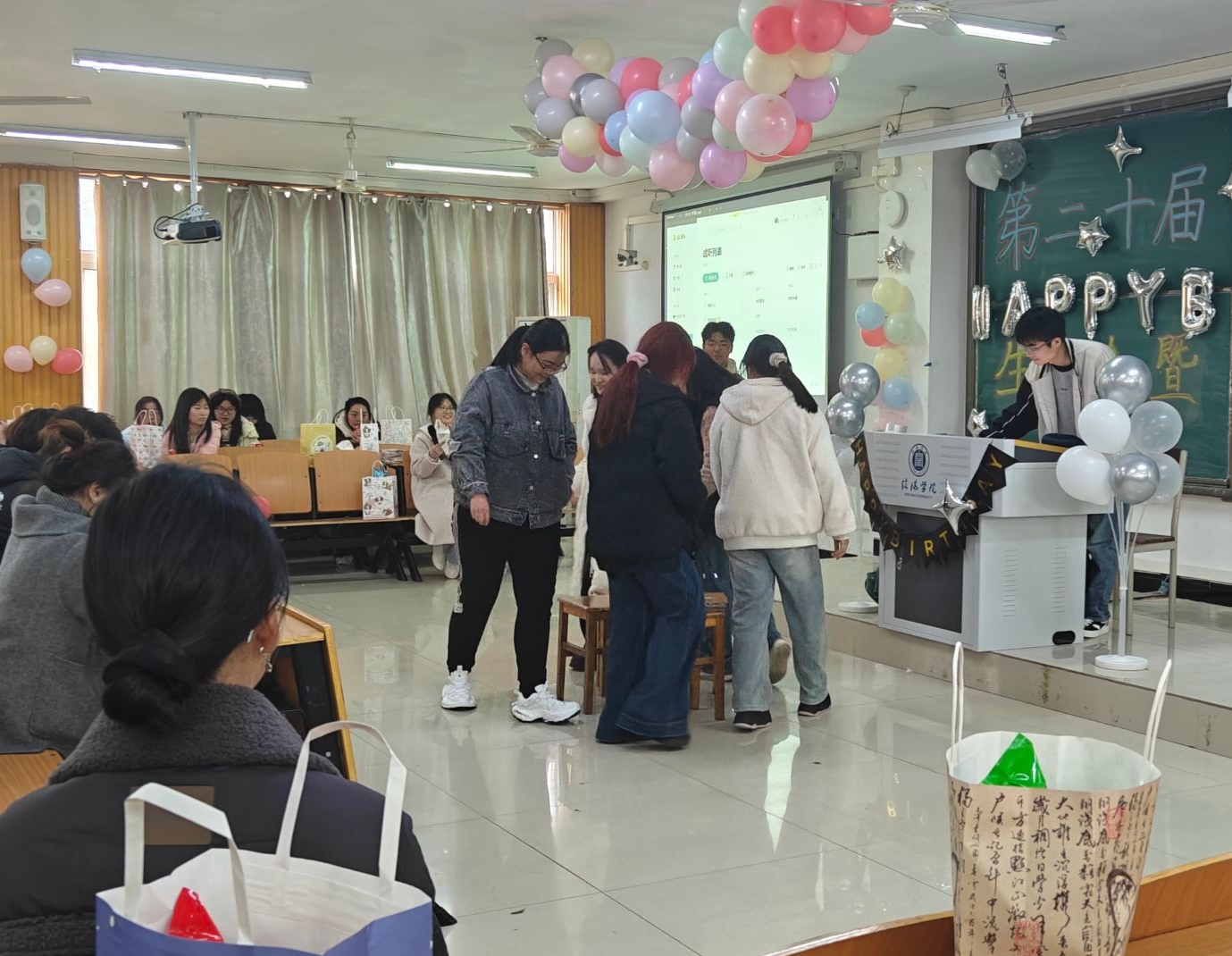 11月22日下午,我校公寓办于人文楼成功举办了第二十届公寓办生日会。现场将精彩表演、趣味互动融为一体,为参与活动的同学们带来了一场视听与欢乐的盛宴。总负责人郭恒,分管负责人郭森、戴静雯、李岩、陈帅旗、郑宇航,各部门部长及全体干事共赴此次盛宴。