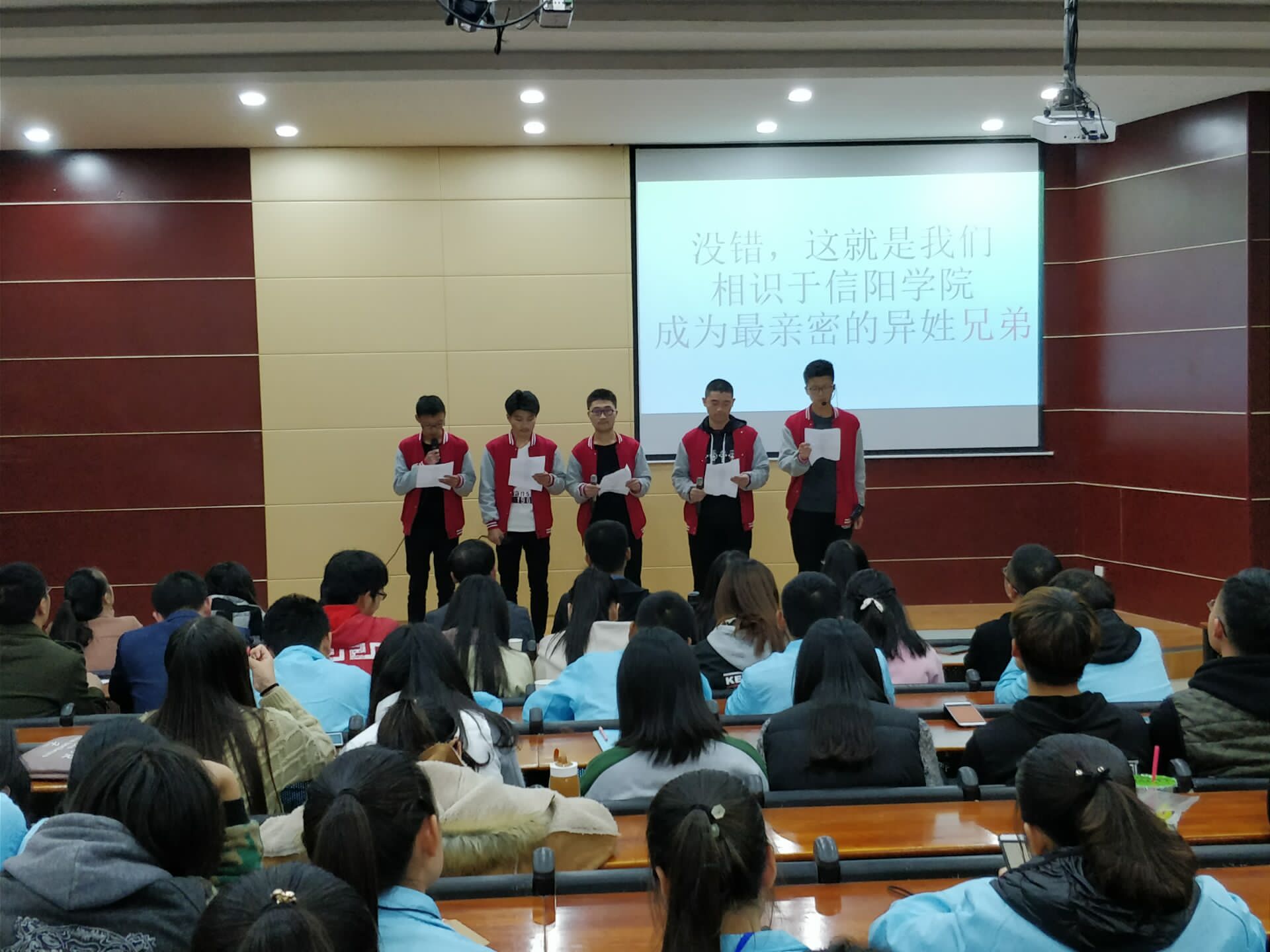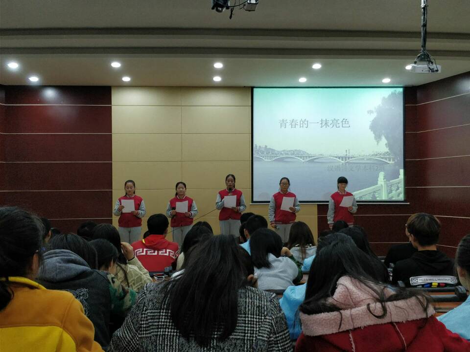 十一月十五日下午三时,在图书馆报告厅正式举办了公寓文化节朗诵比赛的初赛,莅临本次比赛的有各系辅导员和寝教楼管理中心的万圆圆老师。参与比赛的同学们以寝室为单位携带他们的ppt上台进行演讲。