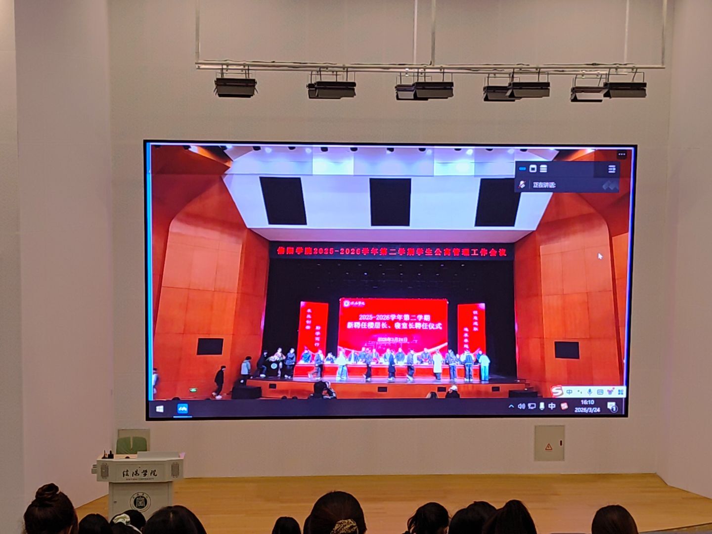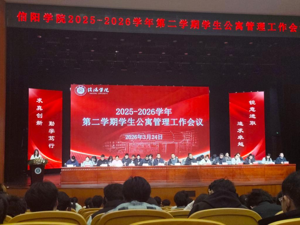 2026年3月24日下午16:00,信阳学院浉河区于音乐厅、南湖区于教一楼113、教三楼415和教三楼005召开第二学期学生公寓管理工作会议。