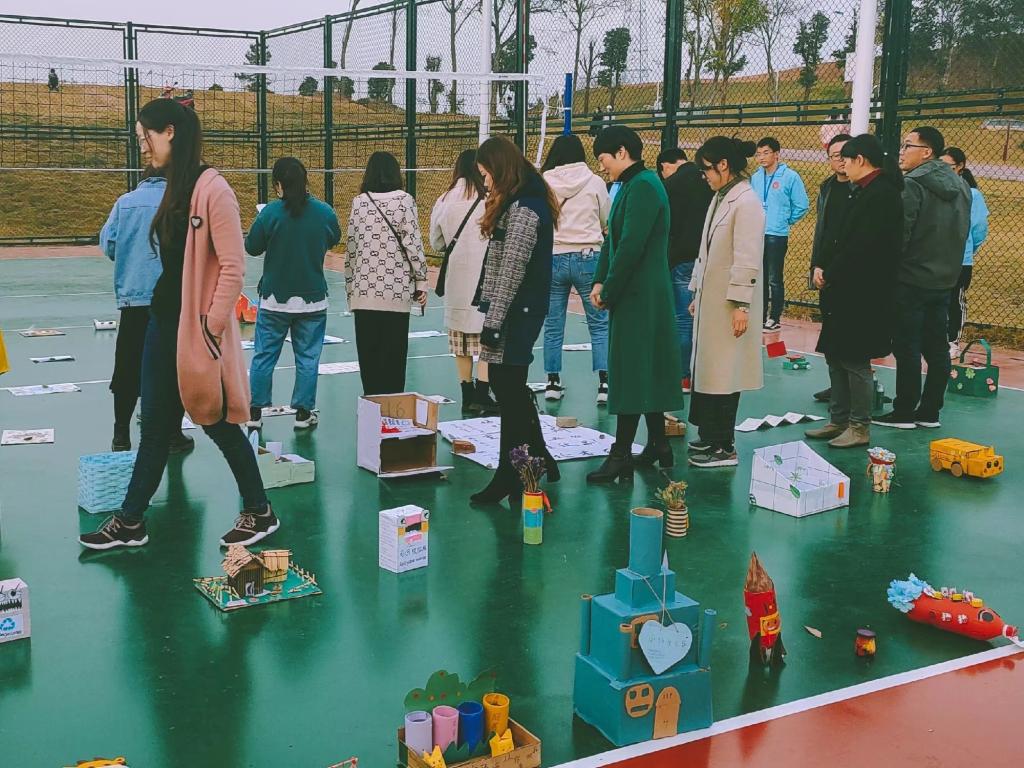 2019年11月22日下午2点30分在灯光操场排球场区举行了节能环保作品评比活动。活动开始之前公寓办成员对其中做工精细的作品进行筛选,并将其带到灯光操场排球场区,按学院排列整齐,等待老师们与各学院学生干部的评比挑选。